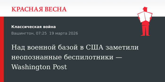 Неопознанные БПЛА были замечены за последние дни над военной базой Форт Макнейр в США, где живут госсекретарь Марко Рубио и глава Пентагона Пит Хегсет, 19 марта сообщает издание Washington Post со ссылкой на источники.