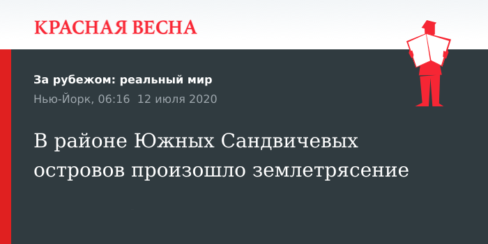Землетрясение магнитудой 5,3 зафиксировала в районе Южных Сандвичевых островов Геологическая служба США 11 июля, сообщает веб-сайт службы.