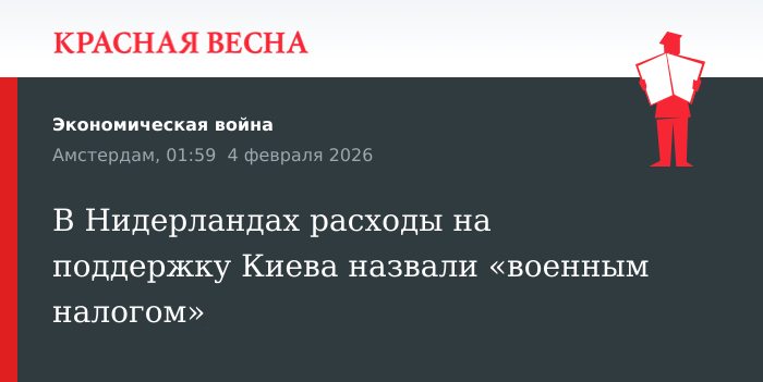 Финансовая поддержка Украины фактически стала для жителей Нидерландов дополнительным «военным налогом», а социальные и экономические проблемы страны остаются без системных решений, заявила глава парламентской фракции правой нидерландской партии «Форум за демократию» Лидевей де Вос 3 февраля в ходе парламентских дебатов.