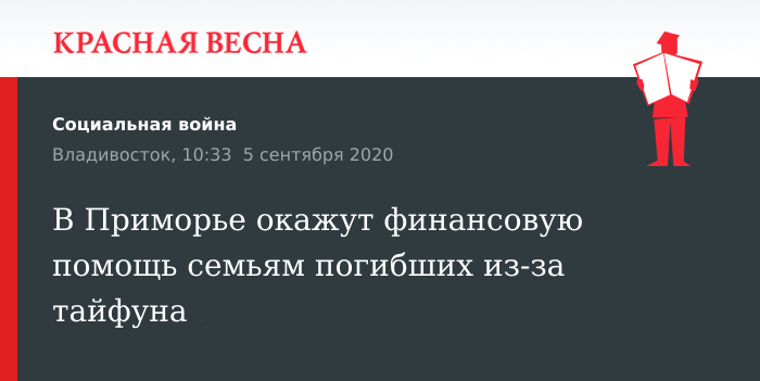 В Приморье окажут финансовую помощь семьям погибших из-за тайфуна