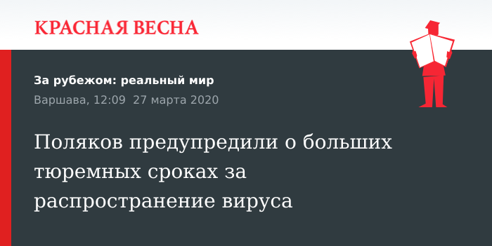 Если гражданин знает, что он заразен, но идет в места массового скопления людей, то к нему применяется ст. 166 УК Польши, по которой ему может грозить до 8 лет тюрьмы. А если из-за этого кто-то заболеет и умрет, то уже до 12 лет тюрьмы.