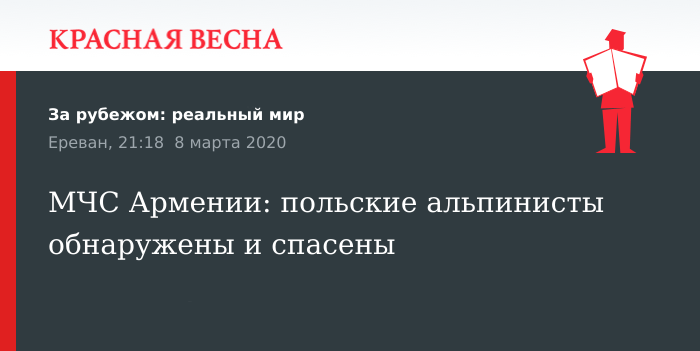 Ранее сообщалось, что на пульт дежурного национального центра кризисного управления поступило сообщение с просьбой о помощи, от двух польских альпинистов, застрявших на северной вершине горы Арагац в Армении. Сообщалось, что один из альпинистов не может спуститься самостоятельно, так как повредил ногу.