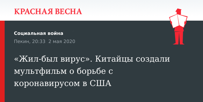 В Китае выпустили короткий анимационный фильм, высмеивающий действия США в период начала распространения эпидемии коронавируса, 2 мая сообщает Reuters.