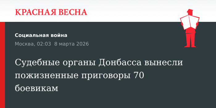 Более 70 боевиков и наемников получили пожизненное лишение свободы за убийства мирных жителей и жестокое обращение с военнопленными в Донбассе, заявил председатель Следственного комитета России Александр Бастрыкин 7 марта в ходе трансляции встречи с президентом России.