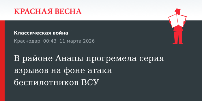 Взрывы в результате атаки украинских беспилотников прогремели в разных районах Анапы, 10 марта сообщает Telegram-канал Shot.