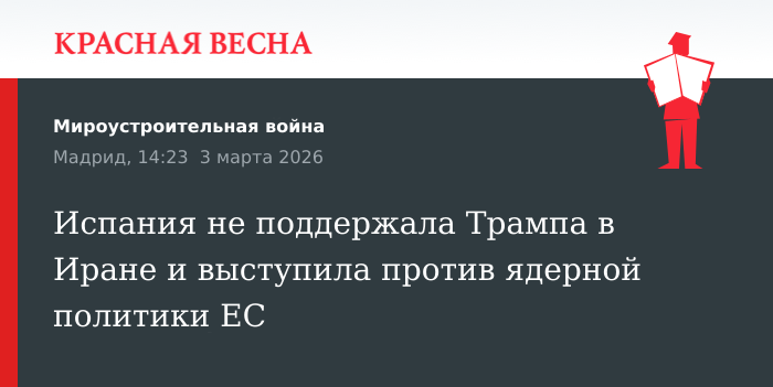 Одновременно Мадрид дистанцировался от планов Парижа и Берлина по созданию альянса для ядерного сдерживания с участием девяти стран ЕС. «Мы открыто заявляем о своем неприятии распространения ядерного оружия и не согласны с эскалацией», — пояснили источники в правительстве, подчеркнув отказ от участия в переговорах.