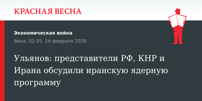 Обсуждение ядерной программы Ирана было темой прошедшей в Вене трехсторонней встречи представителей России, Китая и исламской республики, заявил постпред РФ при международных организациях в Вене Михаил Ульянов 13 февраля в соцсети Х.