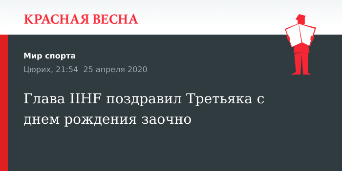 Фазель посетовал, что не может приехать в Москву и поздравить коллегу лично, как он привык в последние годы. «В этот день хочу от всего сердца поздравить Владислава Третьяка с днем рождения», — заявил глава IIHF по телефону.