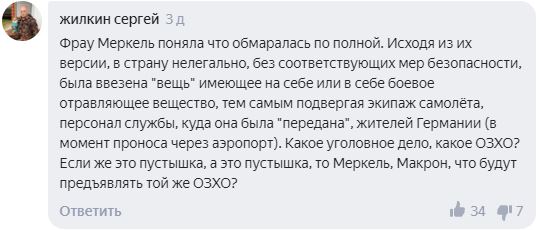 Сергей отмечает, что Меркель со своей версией «отравления» села в лужу, поскольку по ее версии, она дала санкцию на ввоз в Германию без проверки боевого отравляющего вещества.