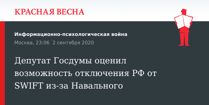 Депутат Госдумы оценил возможность отключения РФ от SWIFT из-за Навального