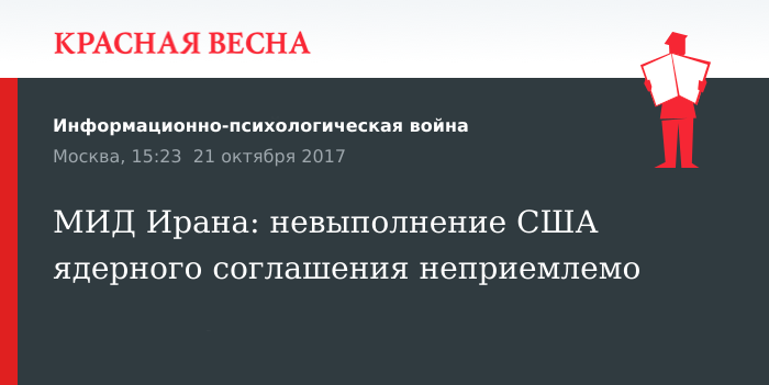 Напомним, что СВПД был заключен в 2015 г. с целью обеспечения невозможности создания Ираном ядерного оружия при сохранении его права на мирный атом. В середине октября нынешнего года Дональд Трамп отказался подтвердить перед конгрессом выполнение Ираном своей части соглашения и заявил, что оно не отвечает интересам США. Вместе с тем в конце августе 2017 г. комиссия МАГАТЭ заявила о том, что Иран выполняет свои обязательства в рамках СВПД.