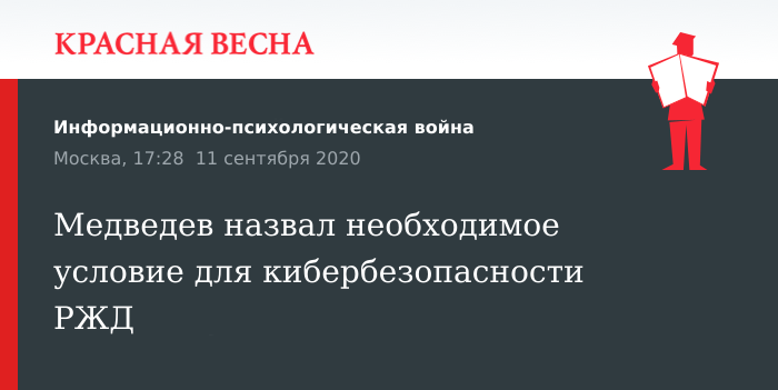 Использование отечественных программ должно стать необходимым условием для кибербезопаности железных дорог заявил зампред Совета безопасности РФ Дмитрий Медведев 11 сентября на встрече с главой РЖД Олегом Белозеровым.