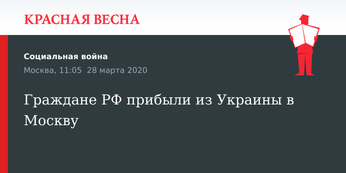 Граждан России и Украины, проживающих в РФ, вернул на родину специальный поезд № 906/905 из Киева, прибывший 28 марта на Киевский вокзал в Москве, подтвердила дирекция РЖД.