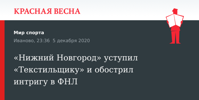 Ивановский «Текстильщик» неожиданно переиграл «Нижний Новгород» в матче 26-го тура Футбольной национальной лиги (ФНЛ) 5 декабря в Иваново.