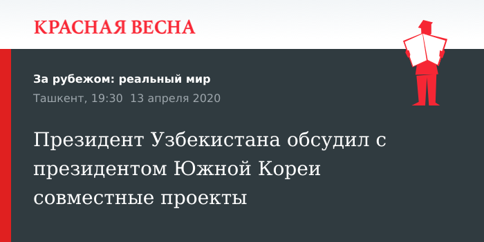 Телефонный разговор с президентом Южной Кореи Мун Чжэ Ином провел президент Узбекистана Шавкат Мирзиёев, 14 апреля сообщает пресс-служба президента.