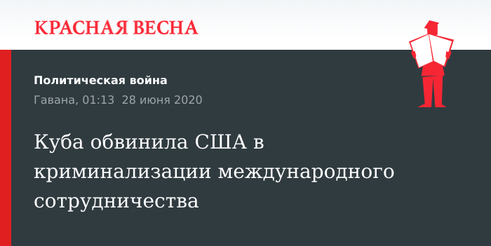 Соединенные Штаты криминализируют международное сотрудничество, которое предлагает Куба другим странам в рамках борьбы с пандемией, заявил министр иностранных дел республики Бруно Родригес, 27 июня сообщает Prensa Latina.