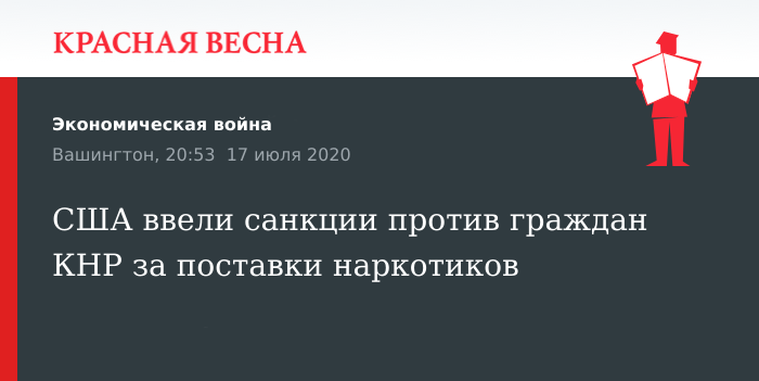 Санкции против четырех граждан КНР за незаконные поставки синтетических наркотиков ввело Министерство финансов США 17 июля, сообщает пресс-служба американского ведомства.