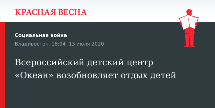 Работа детского центра возобновится после почти четырех месячного перерыва. Свои двери «Океан» откроет пока только для детей из Приморья.