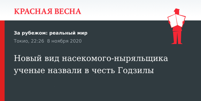 Новый вид насекомого-ныряльщика ученые назвали в честь Годзилы
