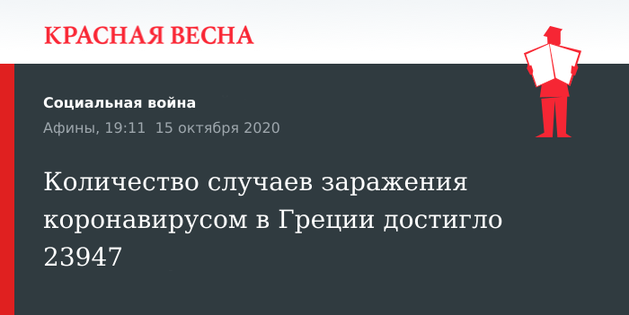 Напомним, 14 октября в Греции было зарегистрировано 436 новых случая заражения. Из них 201 пришелся на столичный регион Аттика, а 38 — на Салоники. Максимальный суточный прирост количества подтвержденных случаев заражения — 460 случаев — отмечался 2 октября. По данным наблюдательного пункта по COVID-19 при правительстве Греции, коэффициент репродукции коронавируса в Греции находится на уровне единицы. Власть связывает рост количества заражений с несоблюдением установленных мер.