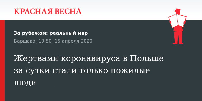 Все погибшие за последние сутки от коронавируса граждане Польши — пожилые люди с сопутствующими заболеваниями, 15 апреля сообщает пресс-служба министерства здравоохранения страны.