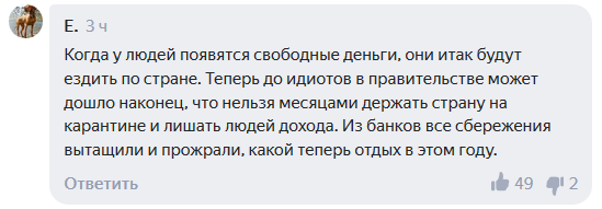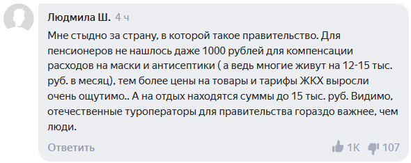 Большое число пользователей Сети возмутилось тем, что правительство выделяет деньги на поддержку индустрии отдыха, но не дает субсидии пенсионерам.