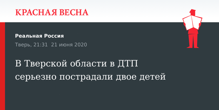 Двое детей, пострадавших в дорожно-транспортном происшествии в Тверской области 21 июня доставлены в детскую областную клиническую больницу (ДОКБ) города Тверь, сообщила 21 июня в записи на своей странице социальной сети Instagram главный врач ДОКБ Анна Зайцева.
