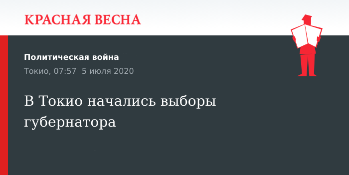 Голосование на губернаторских выборах начались в японской столице Токио 5 июля, сообщает телерадиокомпания NHK.