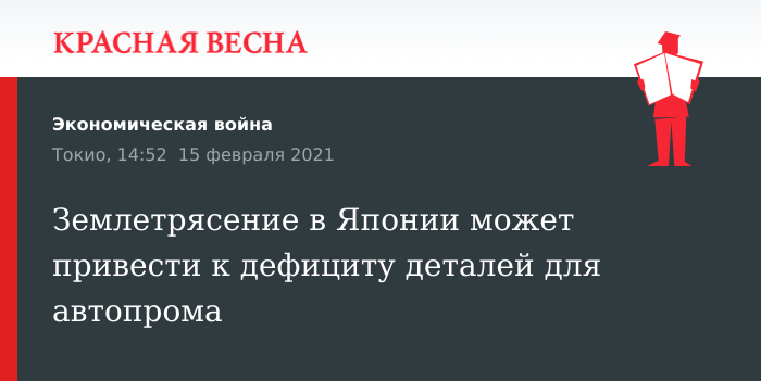 В Японии из-за землетрясения были остановлены несколько заводов, выпускающих матриалы и детали для автомобильной промышленности, 15 февраля сообщает Nikkei Asia.