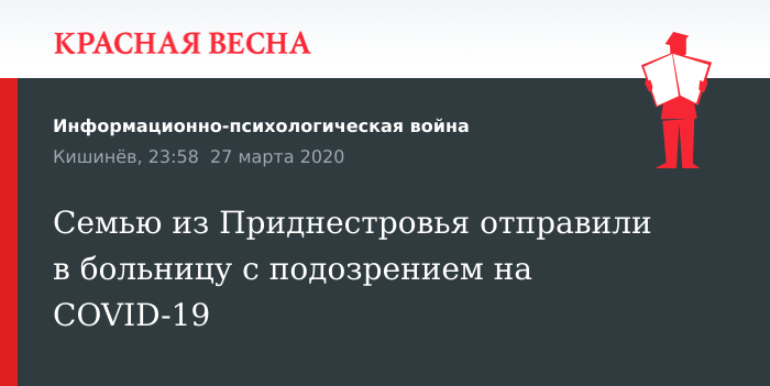 Приднестровская семья доставлена в кишиневскую больницу с подозрением на коронавирус, сообщает пресс-служба МВД Приднестровья 27 марта на своем официальном сайте.