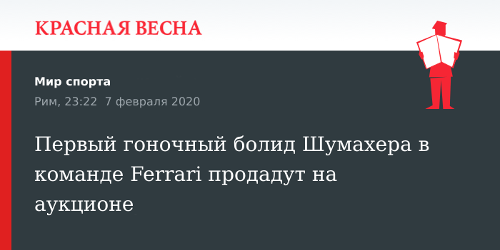 Первый гоночный болид Шумахера в команде Ferrari продадут на аукционе