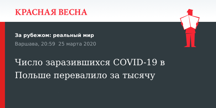 Напомним, в Польше с 20 марта введен режим эпидемии. Власти запрещают любые мероприятия численностью свыше 50 человек, в школах и вузах вводятся каникулы, правительство вводит меры беспрецедентной экономической поддержки.