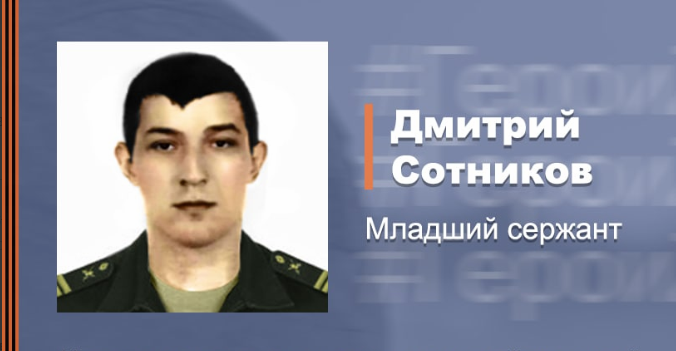 Мужество, самоотверженность и высокий уровень огневой подготовки младшего сержанта Дмитрия Сотникова, обеспечившего победу в бою с атакующими украинскими неонацистами, позволили сохранить жизни российским военнослужащим и не допустить прорыва обороны в ходе выполнения спецоперации по освобождению Донбасса и денацификации Украины. Об этом 5 декабря сообщила пресс-служба Минобороны РФ.