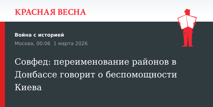 Совфед: переименование районов в Донбассе говорит о беспомощности Киева