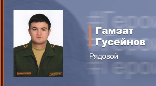 Согласно сообщению, рядовой Гамзат Гусейнов, действуя в составе реактивной батареи, доставлял боеприпасы на стартовые позиции боевых машин. Он неоднократно совершал рейсы в районы, находящиеся под огнем ствольной артиллерии, РЗСО, минометов и ударных беспилотников неонацистов.