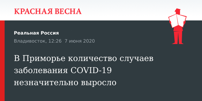 Отметим, по состоянию на 7 июня в Приморье зафиксировано 2 375 случаев заражения коронавирусом, при этом 1 402 человека выздоровели и 22 пациента умерло.