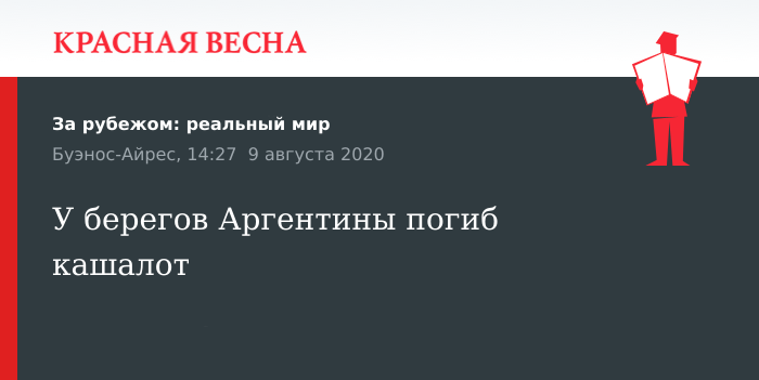 Несмотря на усилия десятков спасателей, на аргентинском пляже погиб 15-метровый кашалот, заявил журналистам президент Фонда фауны Хуан Лоренцани, 8 августа, сообщает Informador.mx.