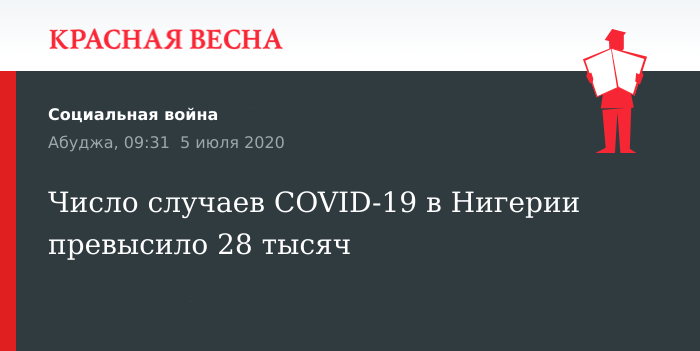 Количество выявленных случаев заражения вирусом SARS-CoV-2 в Нигерии достигло 28 167, 5 июля пишет Premium Times.