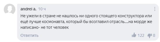Множество критических отзывов вызвала личность главы «Роскосмоса», которого космический обозреватель издания Ars Technica Эрик Бергер обвинил в оторванности от реальности, в Сети, 12 августа комментарии пользователей были опубликованы на новостном агрегаторе «Яндекс.Новости».