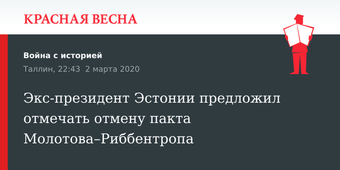 Экс-президент Эстонии предложил отмечать отмену пакта Молотова–Риббентропа