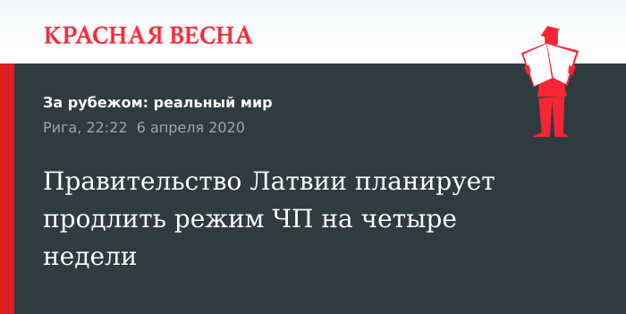 Напомним, сейчас в Латвии действует режим чрезвычайной ситуации, который должен был закончиться 14 апреля. В стране закрыты школы и высшие учебные заведения. Введен запрет международных авиаперелетов, прекращено движение поездов на международных направлениях.