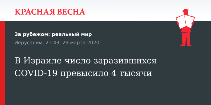В Израиле число заразившихся COVID-19 превысило 4 тысячи