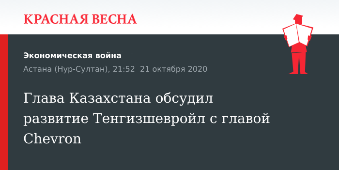 Отдельно стороны проговорили также процесс противодействия распространению коронавируса. Токаев поблагодарил Chevron за грамотно скоординированную работу по предотвращению массового заражения коронавирусной инфекцией на месторождениях, разрабатываемых компанией.
