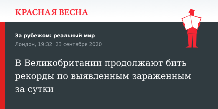 Так, 23 сентября в Великобритании за сутки было выявлено 6 тыс. 178 новых случаев заболевания COVID-19. Этот показатель считается крупнейшим с 1 мая нынешнего года. Число скончавшихся от нового патогена остается неизменным на протяжении последних четырех недель и составляет 37 человек.