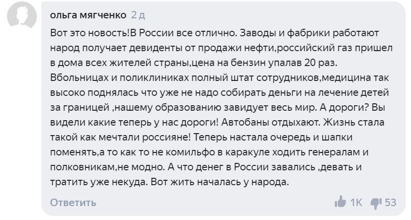 Популярным комментарием оказалась реплика пользователя ольга мягченко: