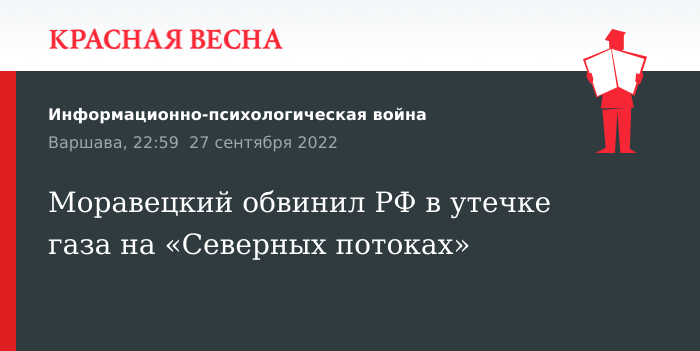 Утечку газа на газопроводах «Северный поток» и «Северный поток — 2» могла устроить Российская Федерация, 27 сентября заявил премьер-министр Польши Матеуш Моравецкий. Слова главы государства передает польское телевидение.