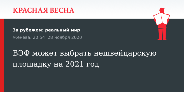 Швейцарская газета также опубликовала интервью с основателем ВЭФ Клаусом Швабом, который пояснил, что планируется провести форум в Швейцарии, если позволит уровень распространения коронавируса.