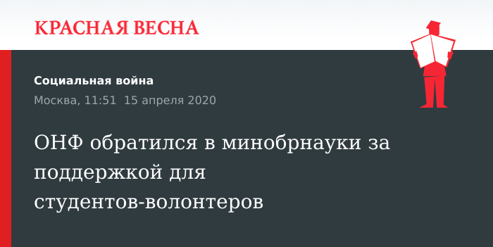 Повысить стипендию для студентов-волонтеров, участвующих в борьбе с коронавирусом, предложил Общероссийский народный фронт. Просьба была направлена в минобрнауки от руководителя проекта «Профстажировки 2.0» Ильи Семина 15 апреля, сообщается на сайте ОНФ.