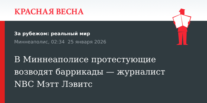 Баррикады на улицах Миннеаполиса (штат Миннесота, США) возводят протестующие против иммиграционной и таможенной полиции страны (ICE). Об этом сообщает журналист телеканала NBC Мэтт Лэвитс 24 января в соцсети X.