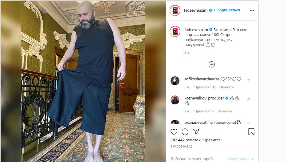 Свою фотографию после того, как сильно похудел, выложил продюсер Максим Фадеев, 27 июня в своем аккаунте Instagram.